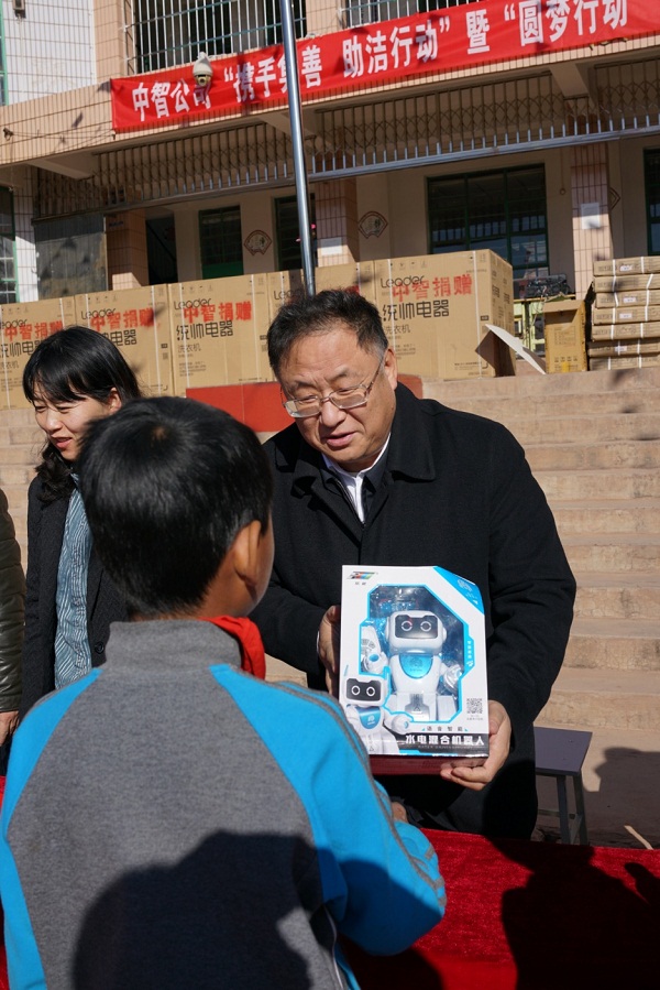 1月18日上午,卜玉龍董事長一行驅車來到姚安縣前場鎮前場小學,舉行“中智公司姚安縣愛心捐贈儀式”。去年10月,中智公司在第5個“10.17”國家扶貧日到來之際啟動“奉獻一片愛心,改變一種命運--中智公司2018年大型慈善捐贈活動”,動員中智公司的合作伙伴和內外部員工為貧困地區中小學和學生捐贈愛心物資和善款,其中捐資助學項目由“圓夢行動”和“攜手集善?助潔行動”組成,活動受到積極響應,“圓夢行動”和“攜手集善?助潔行動”共收到1416名愛心人士捐贈的資金37.6萬元。共為姚安、大姚兩縣全部214所山區中小學校捐贈洗衣機313臺,為前場鎮3所中小學優秀學生實現心愿夢想142件,為山區的孩子們送去關愛和溫暖!捐贈儀式上,中智公司黨委副書記、扶貧開發領導小組常務副組長張杰代表中智公司將為姚安縣81所中小學捐贈的89臺洗衣機移交給姚安縣委副書記、縣委組織部部長林幫榮。在前場小學全體師生的見證下,在孩子們驚喜的眼神中,卜玉龍董事長一行和楚雄州、姚安縣及前場鎮的領導們將孩子們夢想心愿中想得到的物品送到孩子們的手中,實現“圓夢行動”的“圓夢”目標。