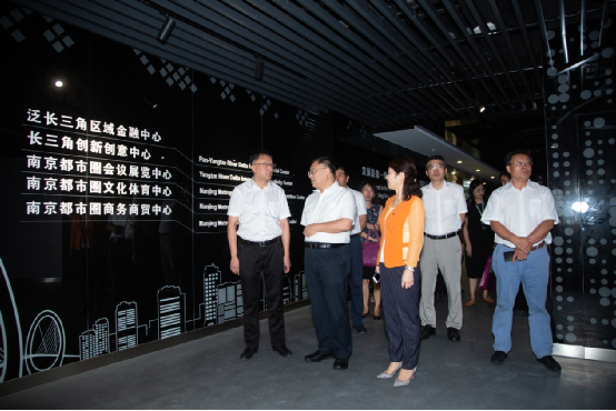 中智公司黨委書記、董事長卜玉龍、中智江蘇公司黨支部書記、總經理吳曉蘭在建鄴區區委組織部副部長郭震環陪同下參觀南京市建鄴區高新區(科技園)展廳