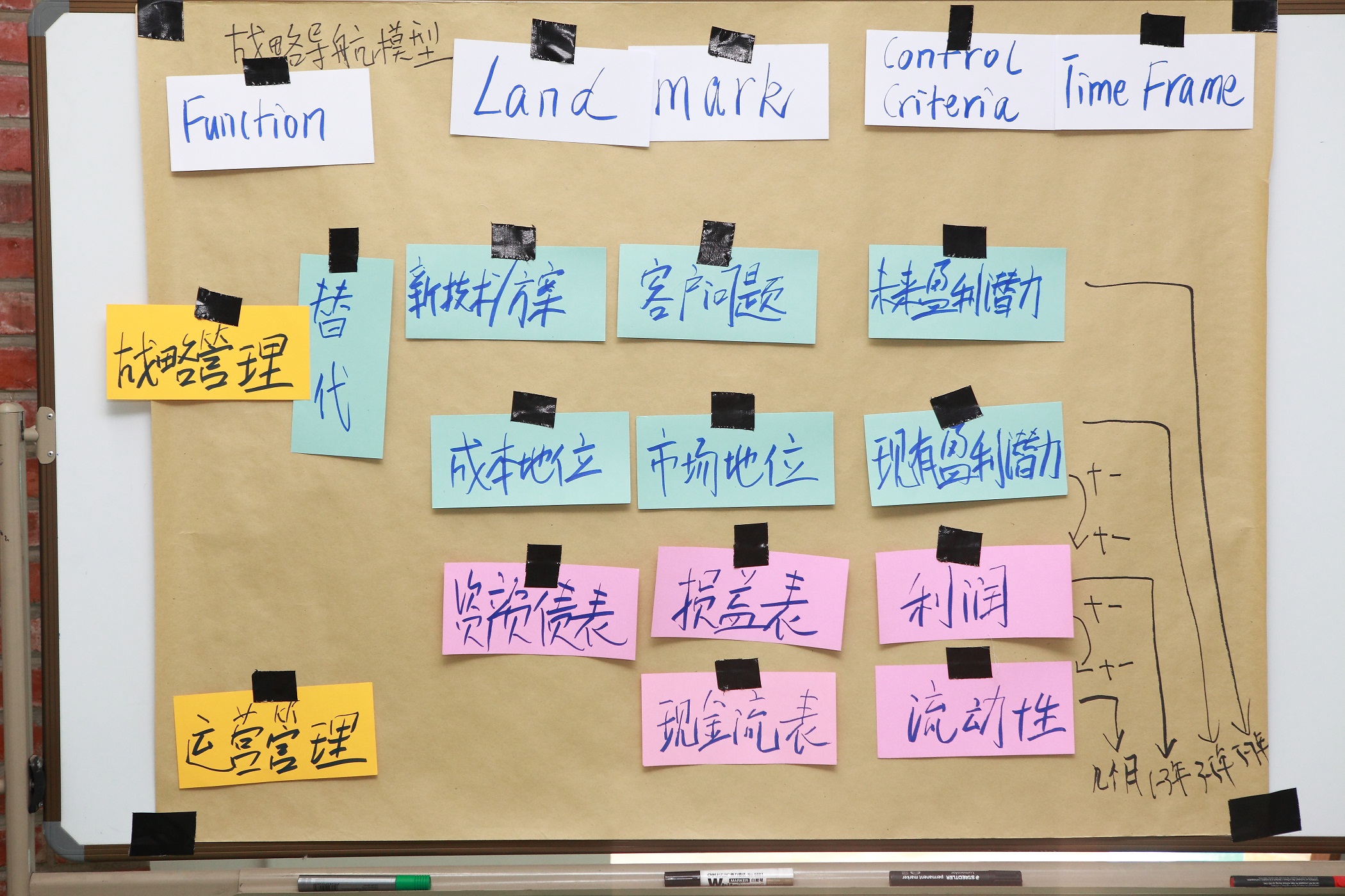 湯老師在過去的兩年內幫助一個某在線少兒英語培訓企業從想法一直到B輪融資成功完成,他以在線教育的幾個常見決策場景舉例,來啟發現場的中層管理者們思考。“假設一下,我們是這家在線少兒英語培訓企業的決策者,我們是應該鼓勵銷售賣短課程(3-6個月)還是長課程(1-3年)?”“VR / AR 人工智會不會對我們的業務產生影響?” 從而引出戰略思維方式的四個維度: