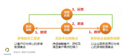 “客戶運營商”模式的目標在于實現員工全流程管理,這包括:將原有員工工作數據全面擴展為社會數據,建立統一視圖;進行企業服務資源的梳理,形成以服務資源ID為核心的標簽體系以及梳理現有的員工接觸資源,實現統一的互動觸點管理,最終實現 “無所不在,無時無刻”的員工管理與員工服務。